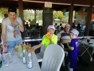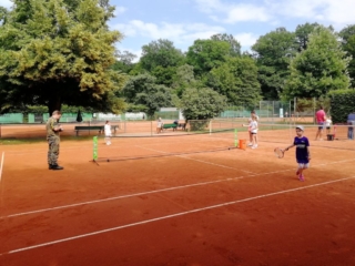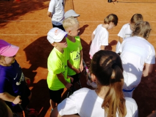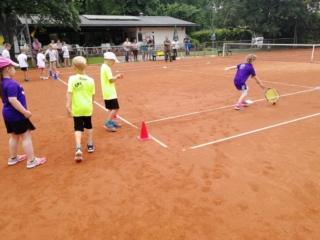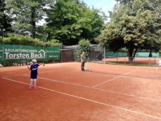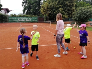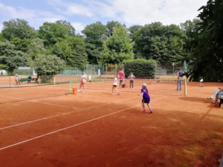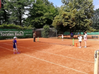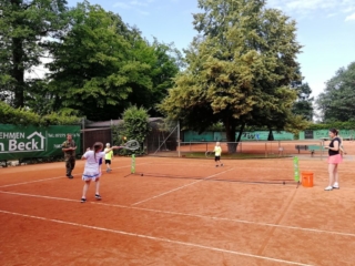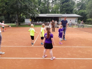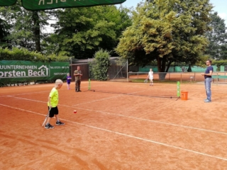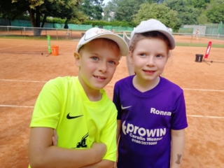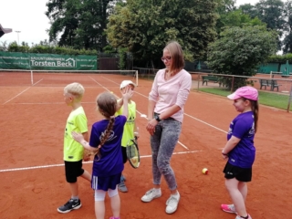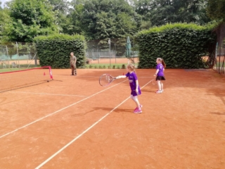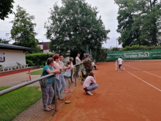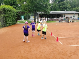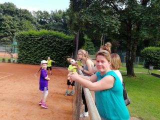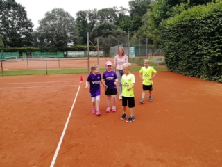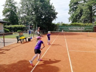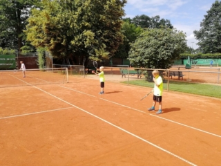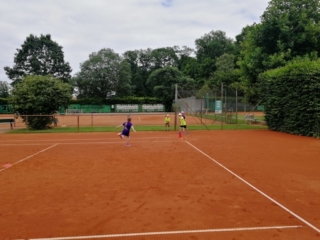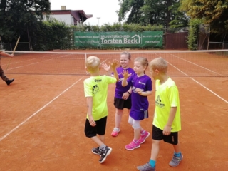 Dann ging es ans Tennisspielen. Unsere vier Kids holten alle vier Einzel und standen damit schon vor den Doppeln als Sieger fest. Ronna und Yara holten dann noch ein Doppel, während Ben und Leon knapp verloren.