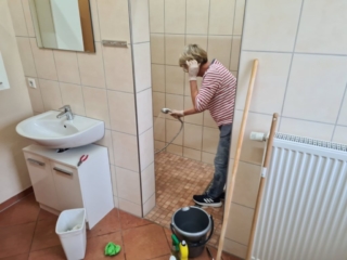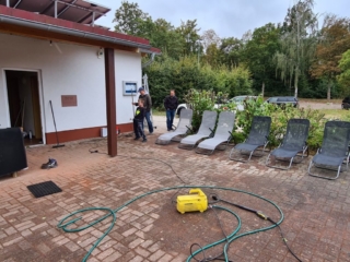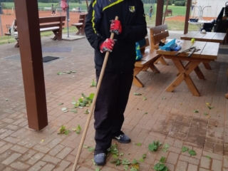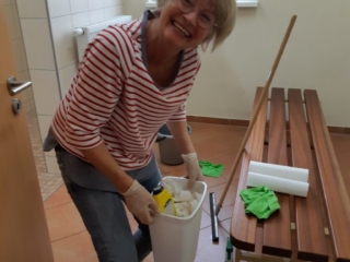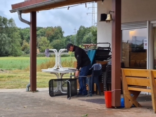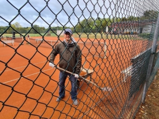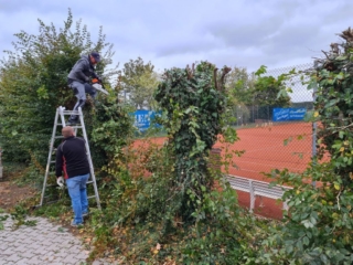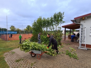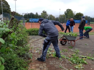 Im Clubhaus entrümpelten wir sämtlich Schubladen, Küchenschränke, die Kühlzelle und unseren „beliebten“ Technikraum. In der Küche wurden die Schränke neu sortiert und ausgewaschen, an der Theke im Clubraum wurden die Pokale von Staub befreit, im Clubhaus die Spinnweben an der hohen Decke entfernt und die Duschen wurden gründlich entkalkt. Um unsere Tennisplätze herum wurde das Unkraut entfernt und sämtlich Hecken wieder ordentlich klein geschnitten. Die Terrasse und Liegestühle wurden gereinigt und auch die Garagen wurden aufgeräumt. Durch die große Anzahl an Helfern waren wir in 4 Stunden mit allem auch schon fertig.